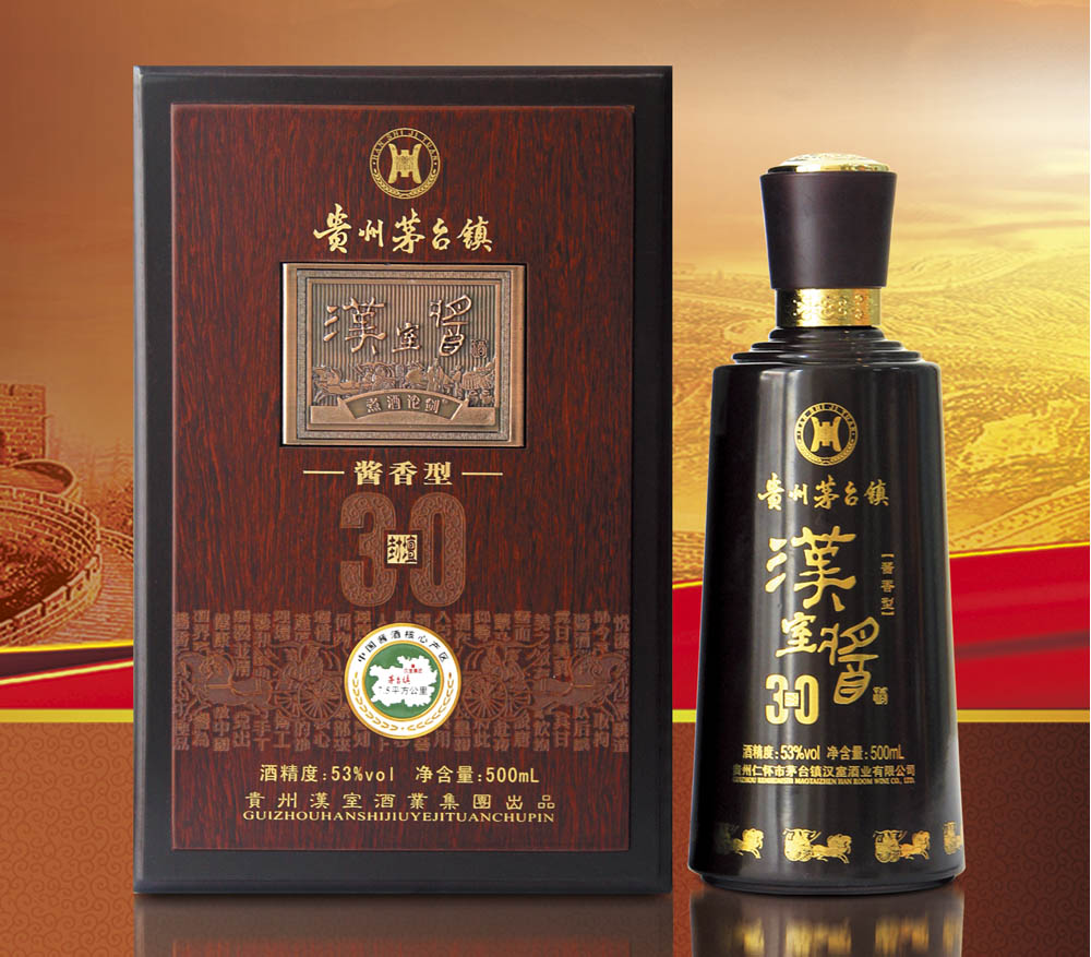 貴州漢室酒業集團是集白酒生產、銷售為一體的仁懷市首批規模企業、仁懷市市政府特別推薦企業。公司成立于1999年,坐落于中國醬酒7.5平方公里核心產區,占地面積15畝,擁有生產窖池60余個,年產大曲醬香酒700噸,庫存大曲茅香年份酒1萬噸,固定資產凈值1.8億。公司先后獲得“政府特別推薦企業”、“中國知名品牌”、“3A級信用企業”、“綠色生態標桿企業”、“國際綠色產業協會理事單位”。產品榮獲貴州省著名商標、巴拿馬紀念獎、南京國際溫泉盛典MAB(U.S.A)“全球指定白酒企業”唯一用酒、“中國有機綠色健康名酒”。